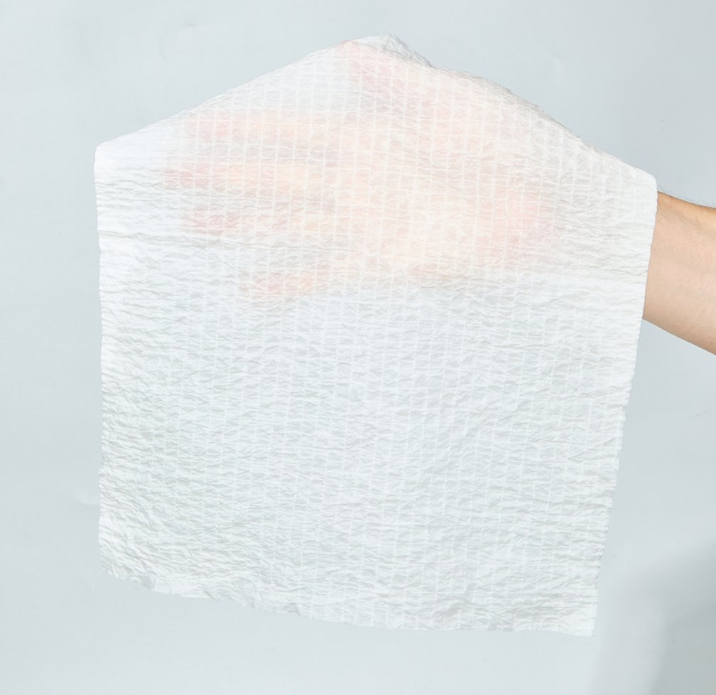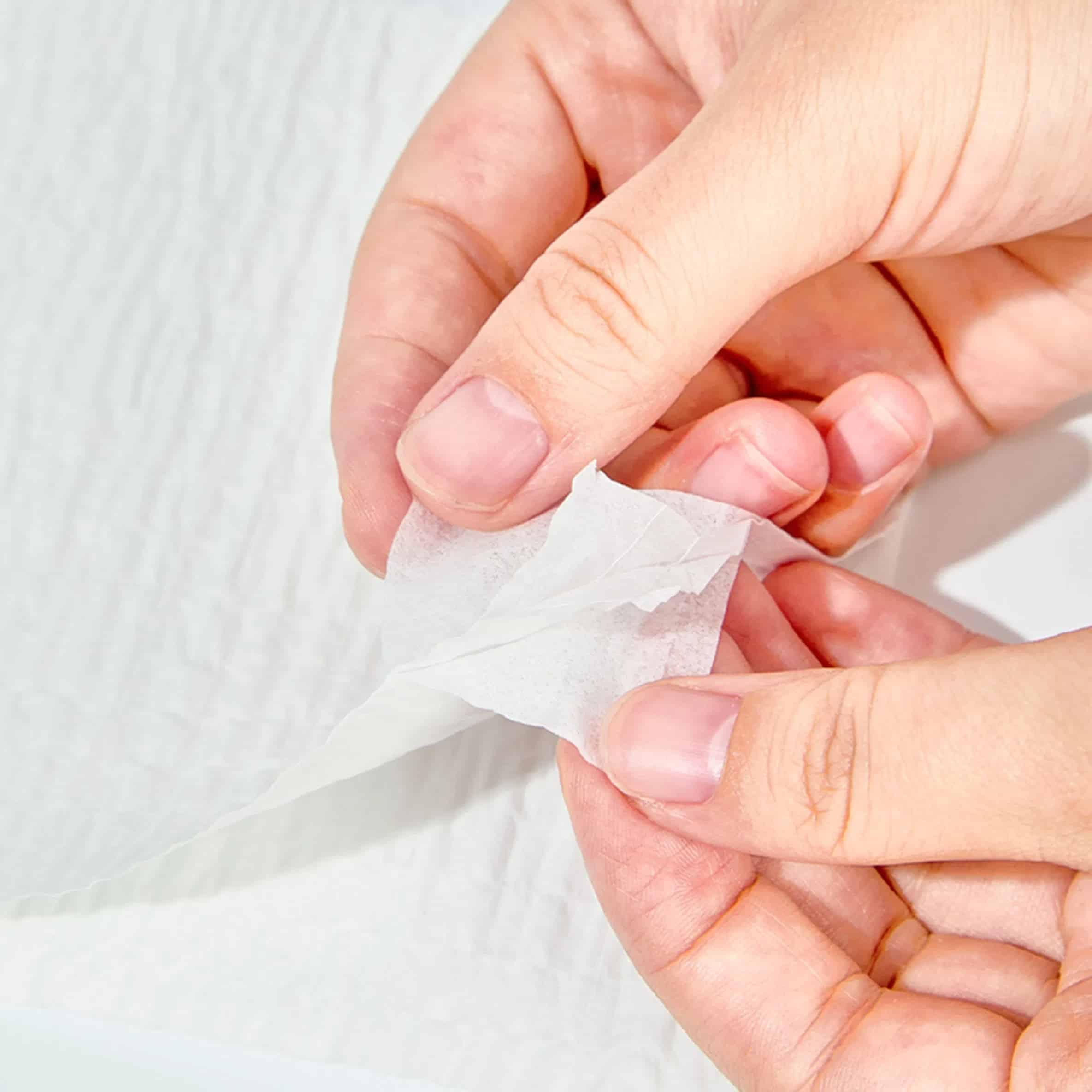 A: 일반적인 종이 제품과는 달리, 저희 물티슈는 면사로 된 "스크림" 그물망이 내장되어 있습니다. 이러한 보강재 덕분에 스크림으로 보강된 탈지용 물티슈는 천과 같은 내구성을 가지게 되어 거친 모서리나 심한 기름때에도 찢어지거나 부스러기를 남기지 않고 견딜 수 있습니다.